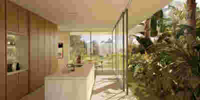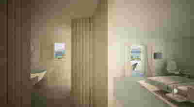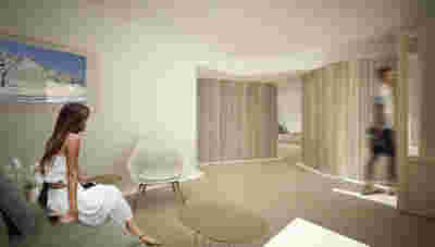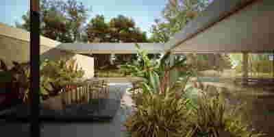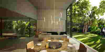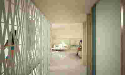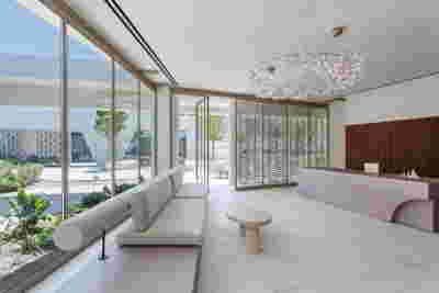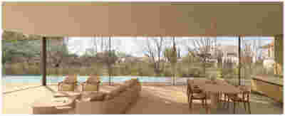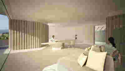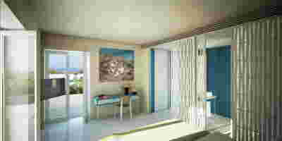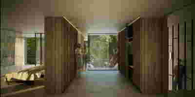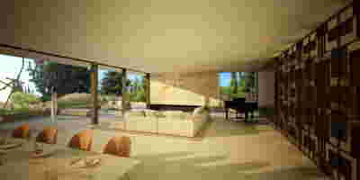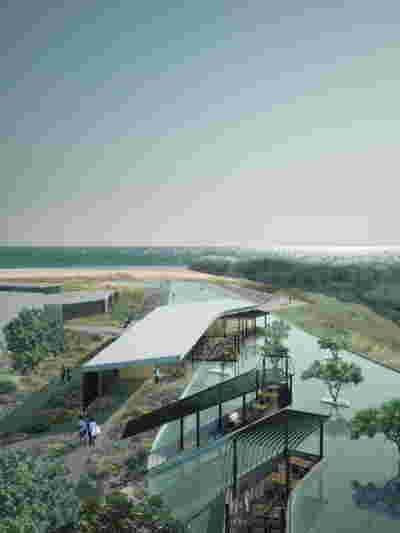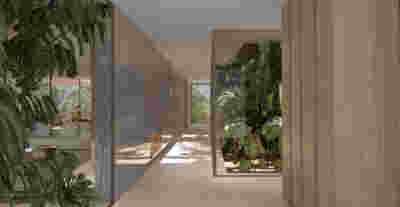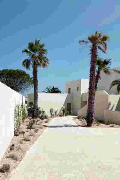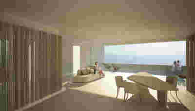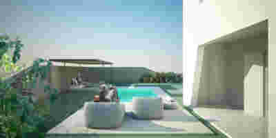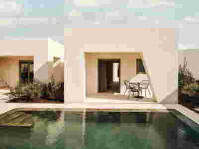 Rooms are grouped in three types with different footprints: types A and B become the predominant types and only at the beach front one is to encounter the Sand Dune Villas. The first two types are grouped in four or five units, under a common planted roof with a polygonal outline -each with a plunge pool and access from the back that ensures privacy, separated with berms and vegetation. The basic principle of both typologies is transparency and natural lighting.