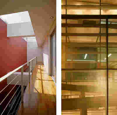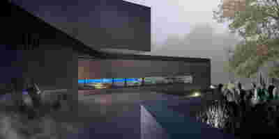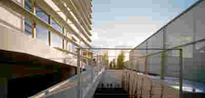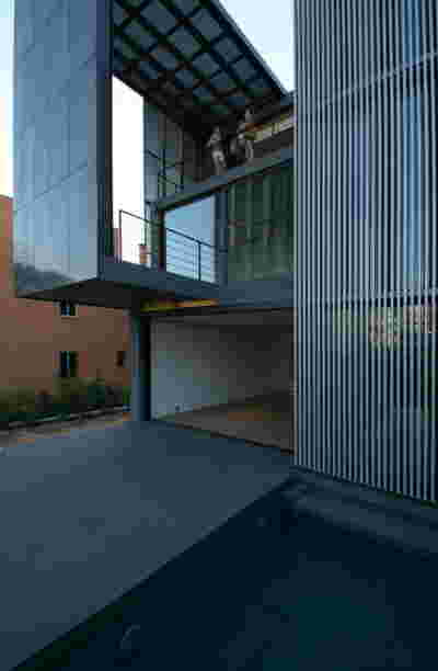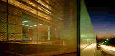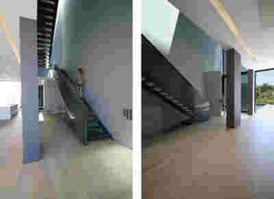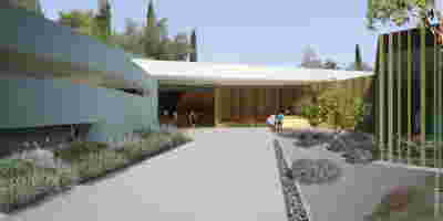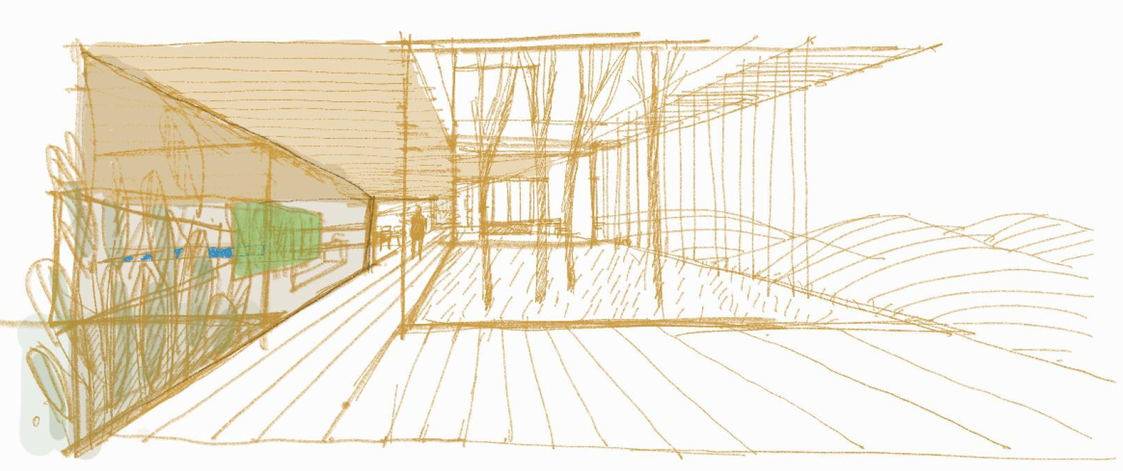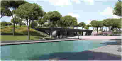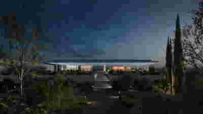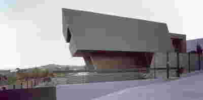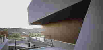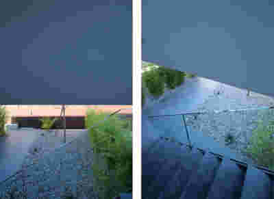 The new visitor building a “new sky” is constructed. Graded colors, metallic textures and the experience of the upper floor as a green “floating” platform, makes the new building preserve memories of the landscape we crossed by road as visitors –the reading of the landscape and the company itself provide here the elements of the architectural inspiration.