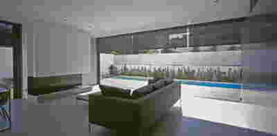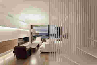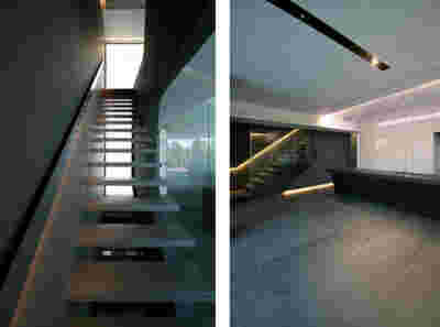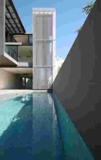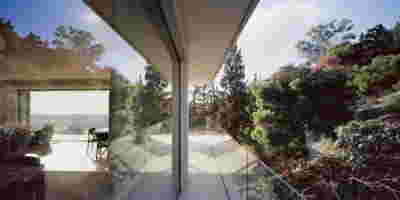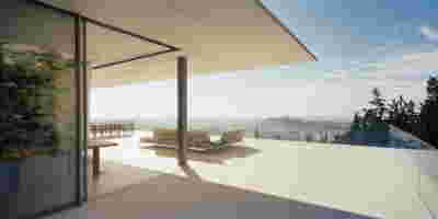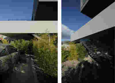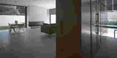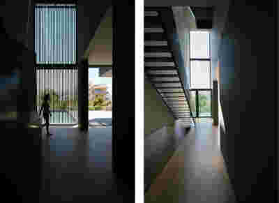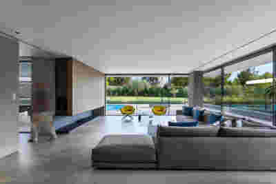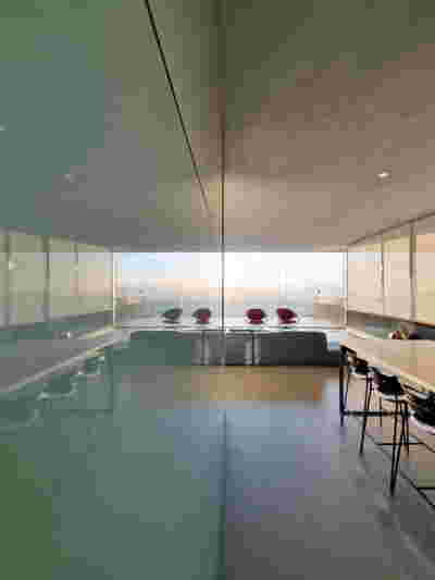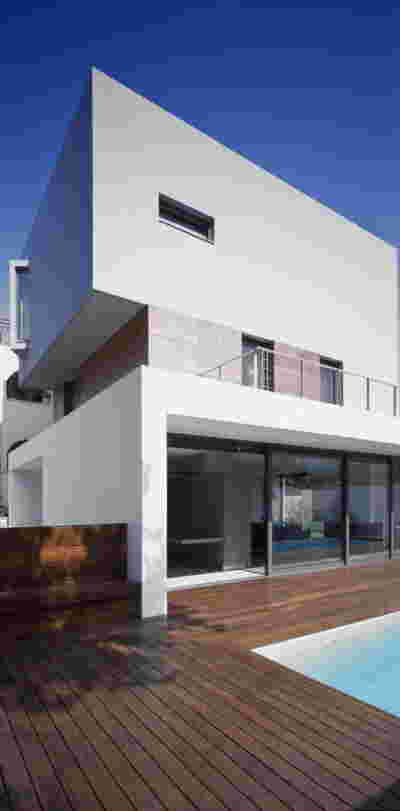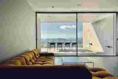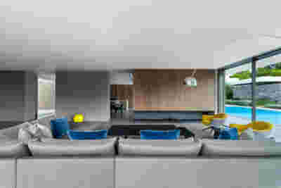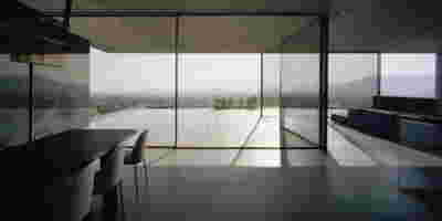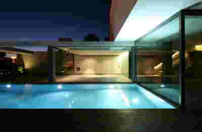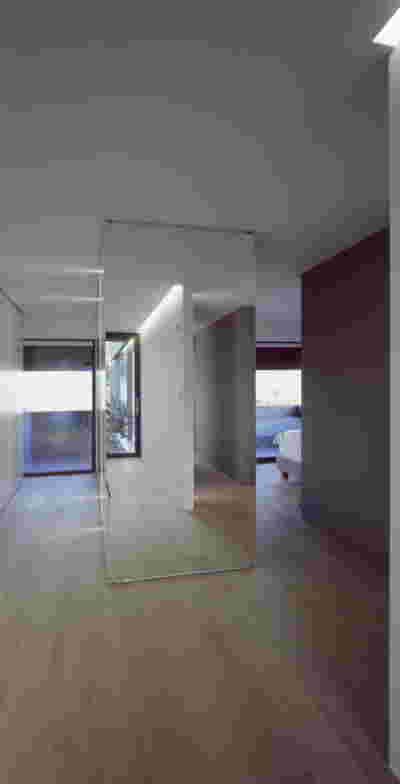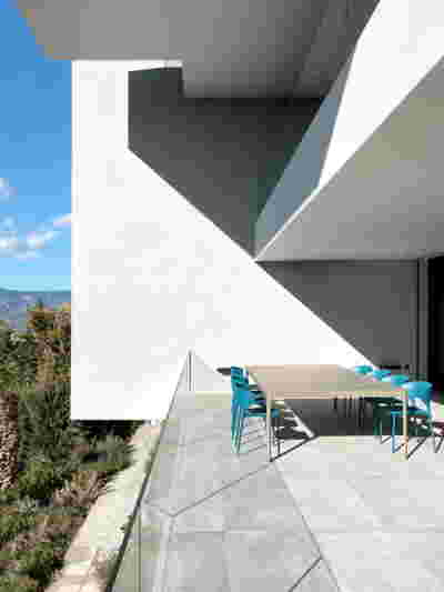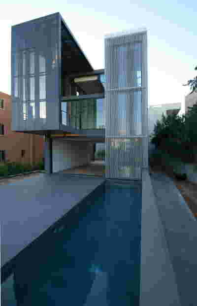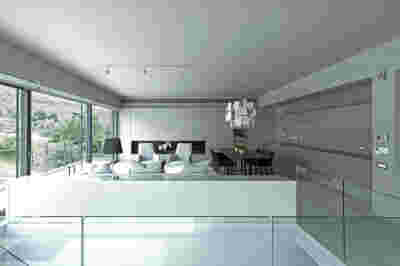 Quite expectantly, from this strongly sloped plot perched on the mountain side, this house would have impressive views towards the city. What was not foreseen was how this view would shape the house itself. How that is we would allow its design to be influenced by this view, instead of parachuting a well proportioned, autonomous building/object that benefited from a good view. It is with this in mind, that we proposed an “elevated platform” on the ground floor –upon it a large balcony, plants, the living room, the dining room, the kitchen and the pool are to be found. The platform forms the base of sight and only the two side walls insulating the neighbors, frame the view -however, the distance between them is such that they tend to hide in the limits of peripheral vision: In the sixteen meters span no column interrupts this view and only an unfolding of the glass facade shapes the interior space. This platform defines quite literally at its shadow the rest of the house, with the bedrooms below, offered access to the garden and one additional storey bellow, all ancillary functions.