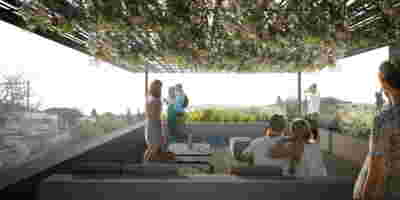 The expansion of the standard program of a hotel is attempted here, including functions such as the public square, the threshing floor, the vineyard, the quarry, in order to compose a multi-layered landscape that is part of the organization of the surrounding area and attempts to bring back memories and build new ones.