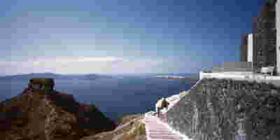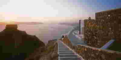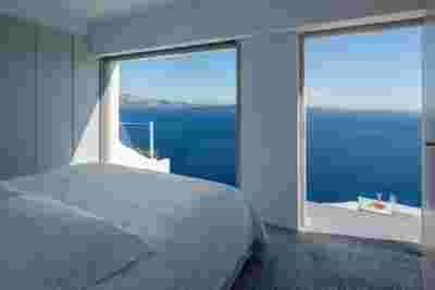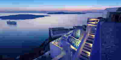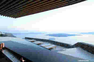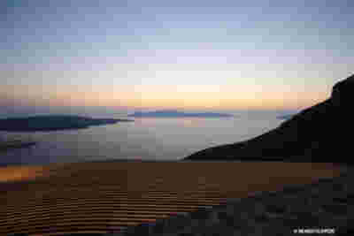 In Santorini there is one famous sunset location surpassing all other and that is Oia. More specifically, at the western side of this traditional village, crowds gather every evening to witness this event. They have moved away from the Caldera that focuses on the volcano and they are facing the Aegean, Riva (the ending of Thirasia island at the background) and in the distance (if the atmosphere is clear) island Ios. It is this sunset that is indeed perfectly framed by the Canaves Oia Epitome as it is positioned lower than the main settlement of Oia, on our downhill route to Amoudi beach.