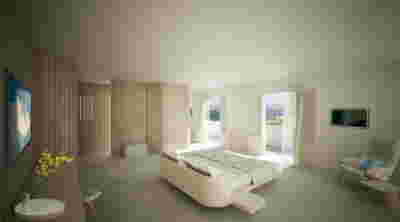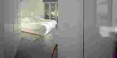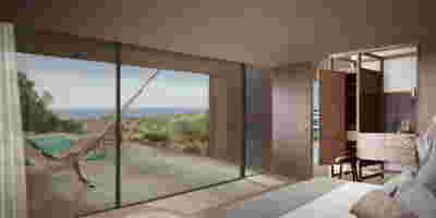 Type A is a rectangular typology with access both from the front view and the backyard. The bed is placed in the center of the room overlooking the private jacuzzi and the sea. The shower is designed on the front side of the room, overlooking the sea and the vegetation.