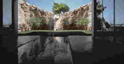 As part of this initial presentation, we did include our first renderings: on the interior design they witness echoes of the Case Study Houses, the series of houses built in Los Angeles in the 1960s. At first, this seemed a natural response when we found out that the owner grew up in an iconic house built in 1963: an emblematic architectural project on the Saronic Gulf that distilled principles of celebrated American modernism such as extensive glazing and large cantilevers. Indeed, the aesthetics of the 1960s proved to be common ground with the owners of the Quarry House -and although we will discontinue exposing the internal beams (a trademark within the architectural vocabulary of the 60s era), we realized that a new attraction was growing, this time to another iconic work of 1963: the Yale School of Architecture in New Haven, an emblematic work of brutalism with its bush-hammered concrete facades that exposed their aggregates.