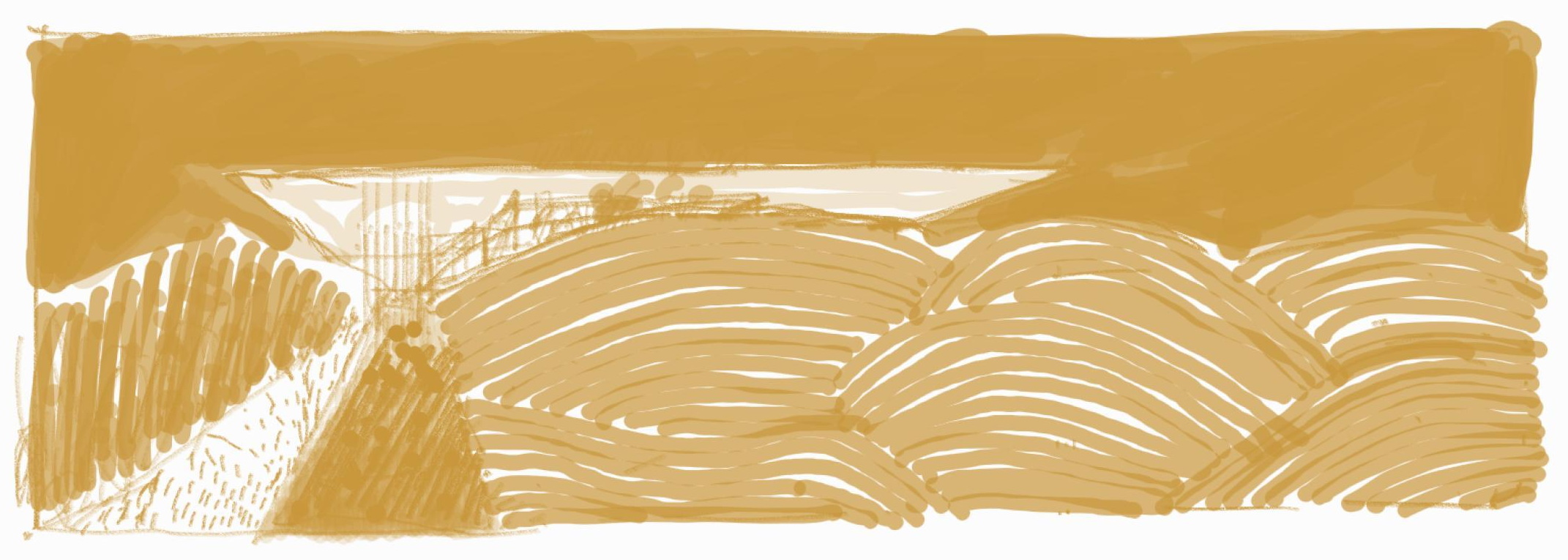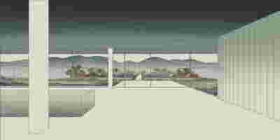 When designing this new visitor center, we wanted to keep as a starting point both the raw materials used by the company and the journey itself until the visitor’s arrival. Coming from the airport of Thessaloniki, the route through this particular open landscape -in a way part of the visit itself- has a special value: it offers a distant view of mountains whose foothills seem not to “rest’ on the intervening fertile green plains. The mountains seem to hover midair — an illusion caused by the dew at the horizon line, a gradation of tones worthy of the Japanese woodblock tradition Ukiyo-e.