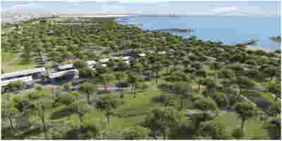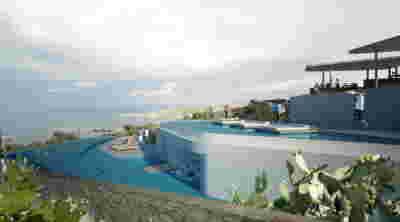 The plot of the Trencadís Hotel, with an area of 80 acres, is located two kilometers away from the island’s airport and culminates at the beach of Achivadolimni. The area was being operated by S&B company from 1954 to 1982 as a perlite mine, thus acquiring an amphitheater form. Today with its stepped section planted, fully integrated into the landscape, it has become an exemplar of restoration in the history of mines.