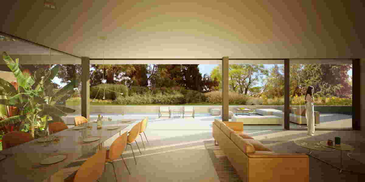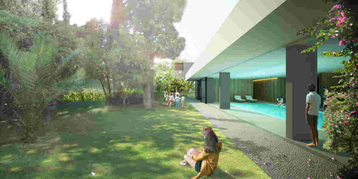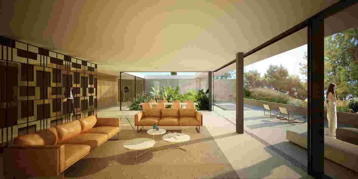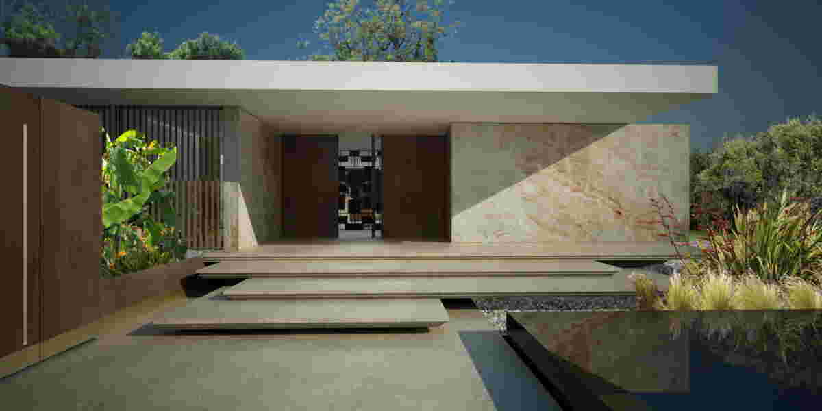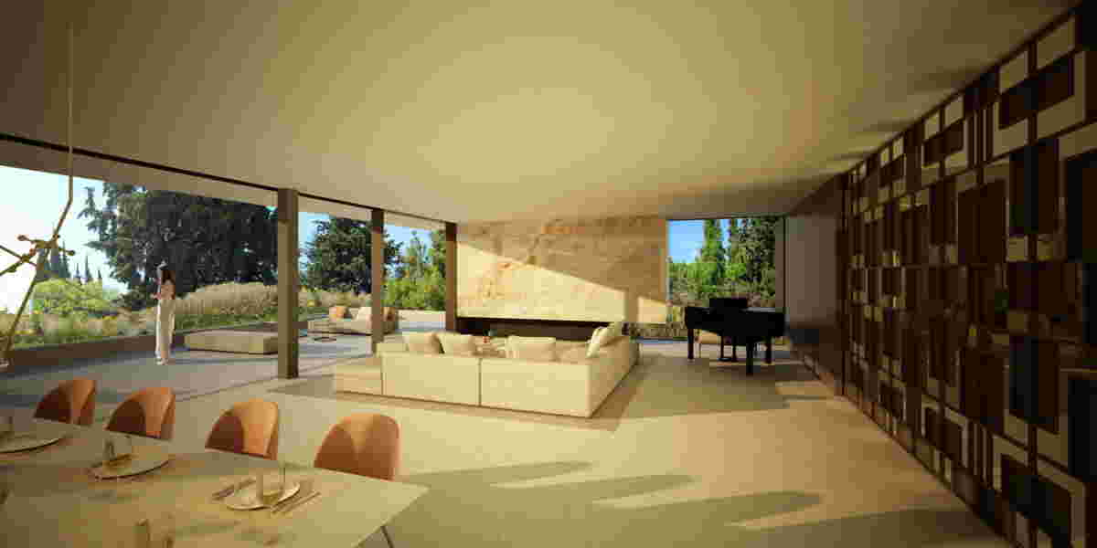 Our main goal was that this residence acquires the character of a single floor building. To remain discreet, almost invisible from the street side partakes to the house a specific aura of luxury: it is rather scarce that we have the chance to expand daily life chores along the view, to move effortlessly from all main living quarters to the bedrooms. This is underlined by covering all spaces with a single slab, a unifying element, directly perceived by all sides, as it protrudes in most of the facades. Below this slab, enclosed spaces remain in recess –only in two areas rooms extend outwards, sliding underneath the overhead slab.