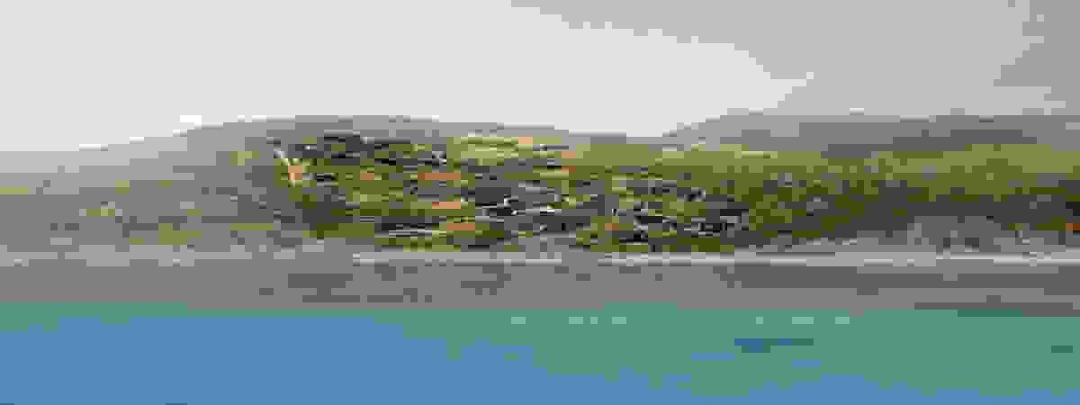 The plot of the Trencadís Hotel, with an area of 80 acres, is located two kilometers away from the island’s airport and culminates at the beach of Achivadolimni. The area was being operated by S&B company from 1954 to 1982 as a perlite mine, thus acquiring an amphitheater form. Today with its stepped section planted, fully integrated into the landscape, it has become an exemplar of restoration in the history of mines.