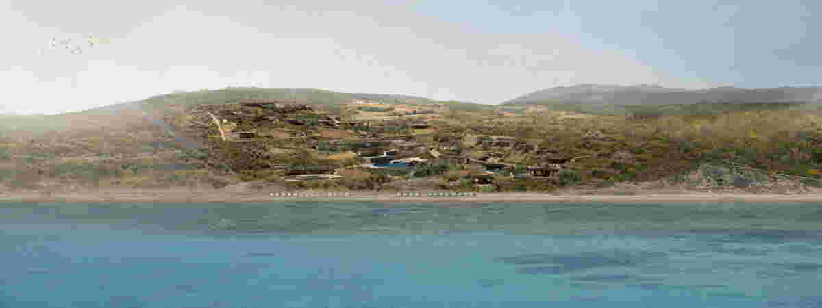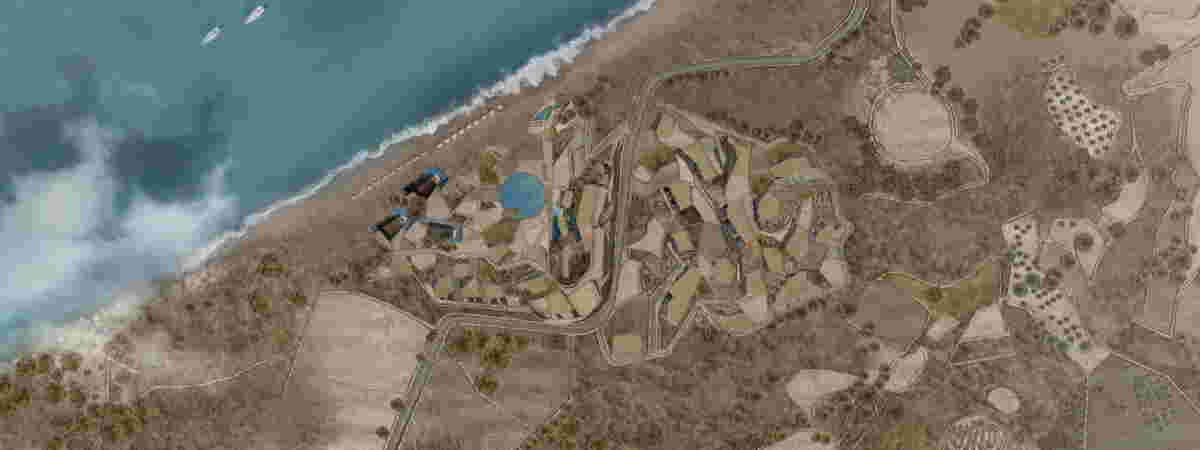 Rooms are grouped in three types with different footprints: types A and B become the predominant types and only at the beach front one is to encounter the Sand Dune Villas. The first two types are grouped in four or five units, under a common planted roof with a polygonal outline -each with a plunge pool and access from the back that ensures privacy, separated with berms and vegetation. The basic principle of both typologies is transparency and natural lighting.